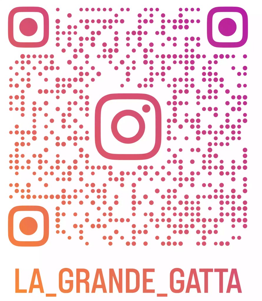 Ha un account Instagram tutto suo dove si esprime senza filtri, prendendo talvolta parola su questioni d’attualità. Se volete un goccio di leggerezza ogni settimana, cliccate qui o scansionate il QR: la Grande Gatta vi accoglierà sicuramente a braccia aperte!