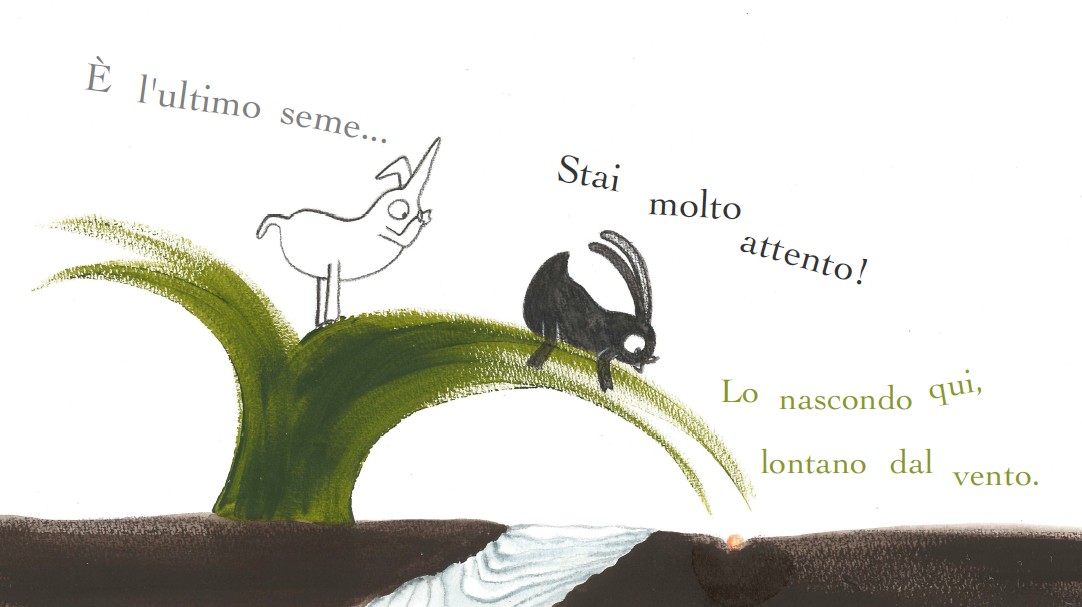 Un alberello ha tre semi che vuole piantare per far crescere le sue idee e le sue potenzialità. Due personaggi complementari, Nerino e Bianchetta, alter ego dei genitori, lo accompagnano e lo consigliano, ma senza forzare le sue scelte. L’alberello getta i semi di qua e di là senza pensarci troppo, e li perde.